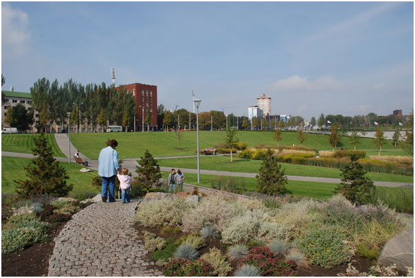 Вокруг стадиона «Донбасс Арена» расположена большая парковая зона в 25 га. Эта территория является крупнейшим рекреационным центром, открытым для жителей и гостей города ежедневно. Проектировщики парка – специалисты известной немецкой компании FAGUS.