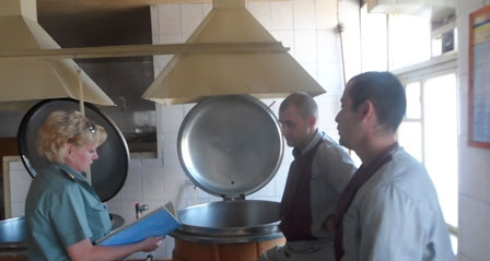 Новости Донецка и области4 сентября 2015 года04.09.2015 Мариупольский СИЗО УГПтС Украины в Донецкой областив Мариупольском СИЗО проведены занятия по соблюдению норм питания и качества приготовления пищи В Мариупольском СИЗО, что в Донецкой области, проведены занятия по соблюдению норм питания и качества приготовления пищи З1.08.2015 г. заведующей столовой Мариупольского следственного изолятора управления Государственной пенитенциарной службы Украины в Донецкой области Яной Клименко было проведено дополнительное занятие с поварским составом пищеблока. В ходе занятия с поварами из числа осужденных отделения хозяйственного обеспечения было проверено знание ими «Норм питания лиц, содержащихся в учреждениях исполнения наказаний и следственных изоляторах ДКВС Украины», требований других нормативных документов, порядка закладки продуктов и прочее. При приготовлении пищи проверяется соблюдение поварами кулинарных правил и санитарно-гигиенических требований при обработке продуктов и приготовления пищи, правил личной гигиены, приготовлении поварами качественных блюд, а также правилам пользования техническими средствами, которые размещены в столовой. Пресс - служба управления ГПтСУ в Донецкой области |
