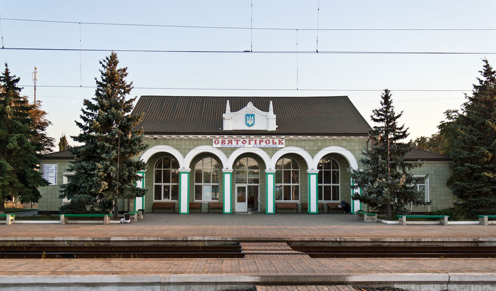 Железнодорожные станции Донецкой областиЖелезнодорожная станция Святогорск, Донецкая областьЖелезнодорожная станция Святогорск Святогорск (укр. Святогірськ; до 1970 года — Святогорская, до 2003 года — Славяногорск) — узловая грузовая и пассажирская станция Донецкой железной дороги на развилке линий Лиман — Изюм и Лиман — Купянск-Узловой, на линий Купянск - Святогорск и Змиев - Лиман между станциями Тропа (7 км), Букино (13 км) и форпостнои (13 км). Находится за чертой города Святогорск, на расстоянии 5 километров от центра города в Лиманском районе Донецкой области (Украина). Является станцией стыкования родов тока. Стык, представляющий собой нейтральную вставку в контактной сети, расположен перед входным светофором станции. Все пути станции под постоянным током, кроме одного пути для электропоездов, приходящих из Купянска. Пассажирское и грузовое сообщение на том направлении обслуживается двухсистемными электровозами ВЛ82 приписки депо Купянск-Сортировочный. На харьковском направлении работают электровозы ВЛ11, ВЛ8, ДЭ1, 2ЭЛ4, ЧС2, ЧС7 приписки депо Лиман и «Октябрь». От станции на север и северо-запад идут две ветки: на Купянск и Изюм соответственно (обе относятся к Южной железной дороге). Возле станции расположен посёлок Сосновое. Действует автобусное сообщение со Свято-Успенской Святогорской лаврой. Расписание поездов |